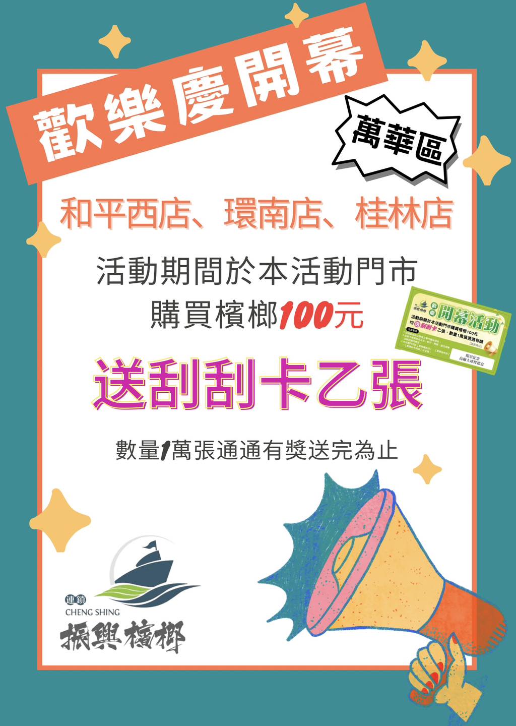 🎁 活動規則: 凡於活動期間,單筆消費檳榔🈵100元,即可獲得刮刮卡1張!每張卡片都有獎,讓您每刮必中🫵🏼快來挑戰幸運大獎‼️