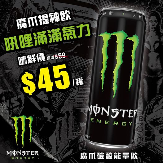 將最酷能量飲料放到罐中,Monster Energy 將充滿新鮮的甜味﹑鹹味異國柑橘口味綜合在一起。 柔順口感再帶一絲刺激你的腎上腺素的咖啡因,讓 Monster Energy 釋放你的野性! 運動員、音樂家、重金屬搖滾樂迷﹑潮人﹑遊戲玩家和騎士們都喜歡它——你也會喜歡。