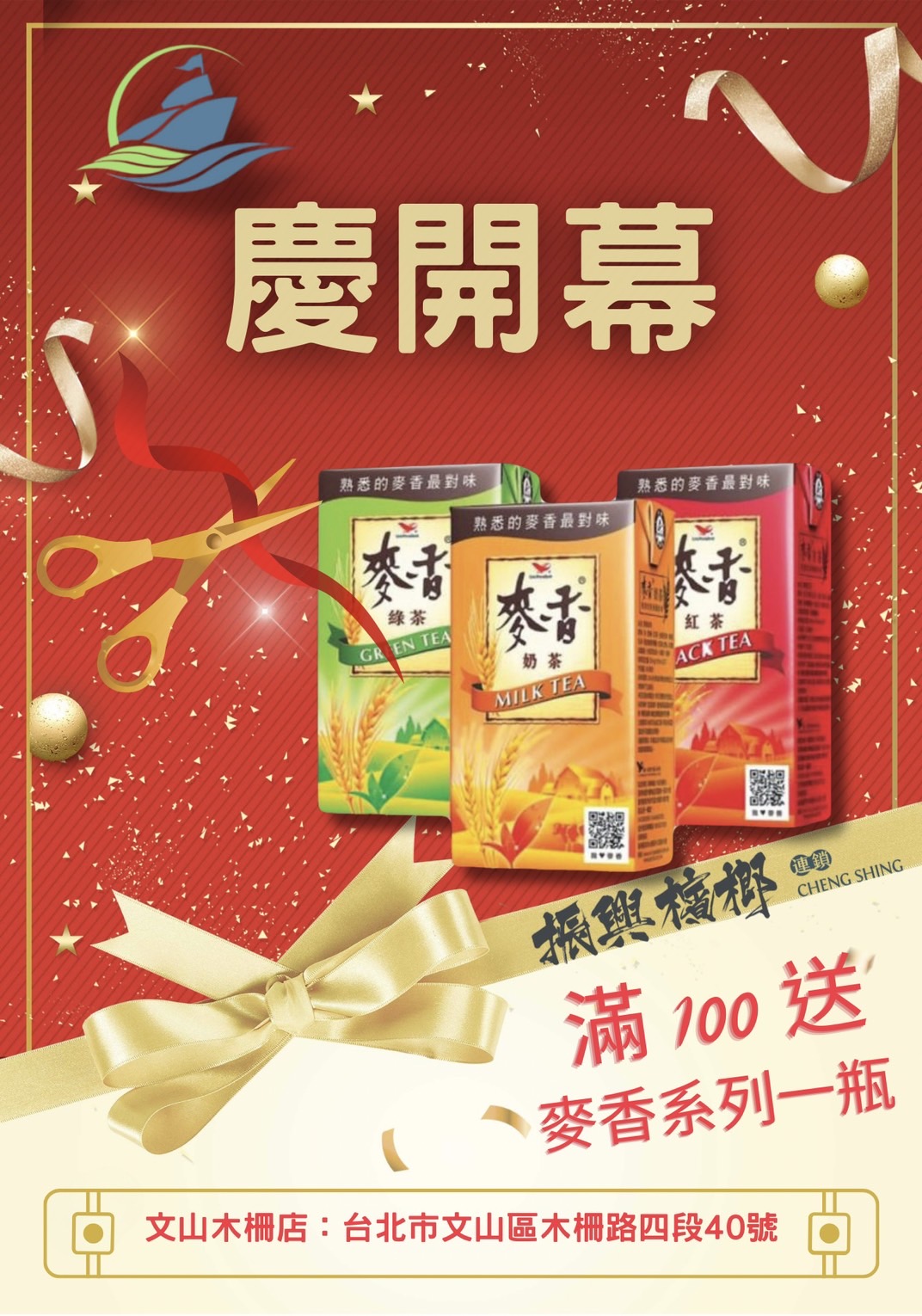 本店新開幕活動 100送『麥香系列飲品一瓶』